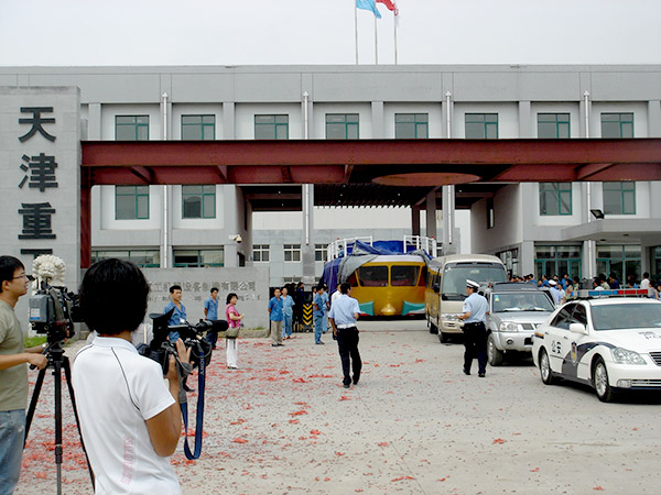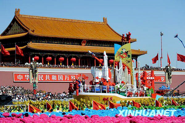 我公司制造的慶祝國慶60年“渤海號”彩車經過天安門前,經受黨和國家領導人檢閱